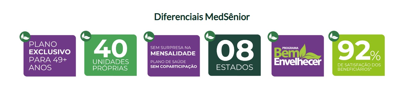 A MedSênior é um plano de saúde pensado exclusivamente para pessoas com 49 anos ou mais. Com atendimento humanizado e SEM COPARTICIPAÇÃO, oferecemos um cuidado diferenciado para quem valoriza qualidade de vida e bem-estar.